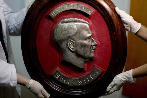 Među predmetima se nalaze i bista Adolfa Hitlera, lupe u kutijama sa kukastim krstovima i medicinske sprave za mjerenje veličine glave.