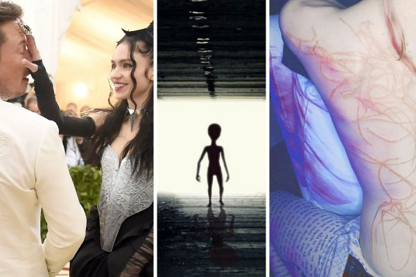 – Čitava leđa sa bijelim mastilom @tweakt i dobili smo pomoć od vanzemaljskog mozga putem kompjutera @nusi_quero – napisala je Grimes.